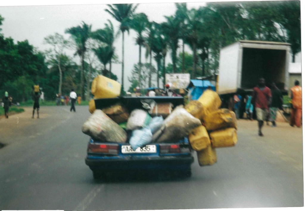 So vollgeladen wie der voranfahrendeWagen , ist unser Fahrzeug allerdings nicht. (Foto StH: Sierra Leone, 2000)