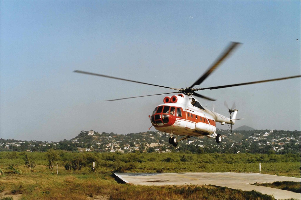 Einer der Hubschrauber für den Transfer zwischen dem Flughafen Lungi und Freetown (Foto: StH – 2002)