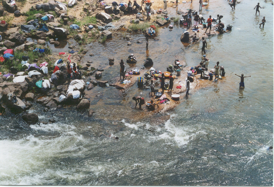 Am Anfang der Brücke steht eine Gruppe von UNO-Soldaten aus Guinea. Sie wollen sofort fotografiert werden, um eine Erinnerung an diesen berühmt-berüchtigten Ort zu haben, wenn sie nach ihrer Mis-sion wieder zu Hause sind. Ein paar Meter weiter ist ein Lkw auf den halben Palmenstämmen, alten Eisenbahnbohlen und sonstigen Stöcken und Brettern der Brücke eingebrochen. „God Go With You“