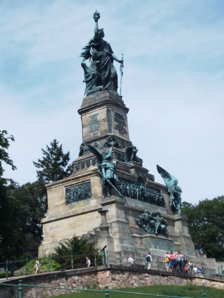Am Ende der Wegstrecke erwartete uns die gut 38 m hohe Germania, Teil des geschichtsträchtigen Niederwalddenkmal mit erläuternden Schrifttafeln, die Aufschluss über die wechselhafte Bedeutung insbesondere im deutsch-französischen Verhältnis gibt.