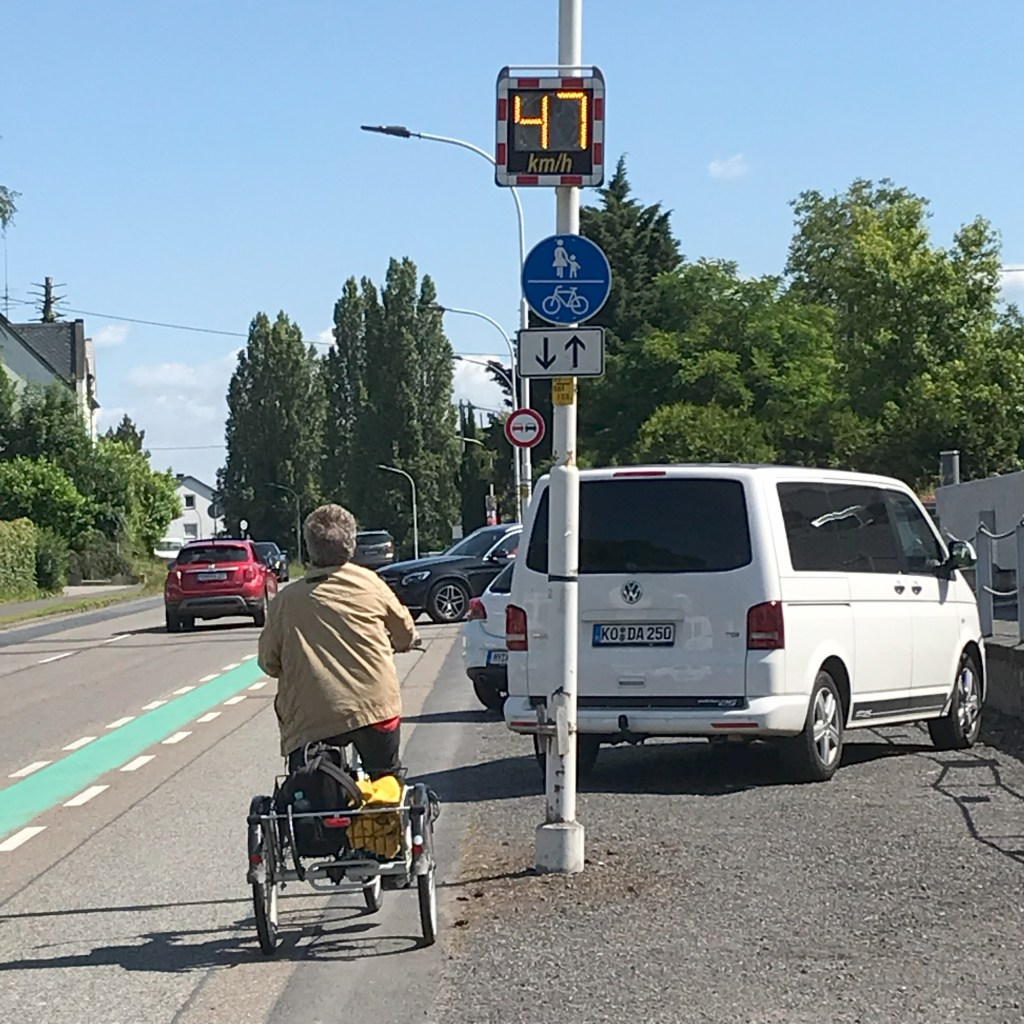 Natürlich hat sich das Leben in vielen Aspekten sehr geändert, doch sieht und erfreut er sich der Dinge, die noch gehen. Und seit er 2006 ein Dreirad in einem Fahrradladen sah und bei der Probefahrt gewahr wurde, dass er (mit ganz leichtem Umbau) darauf auf- und von ihm wieder selbstständig absteigen konnte, hat auch er wieder einen weit größeren Aktionsradius. Außerdem wurden einige Bedienelemente von der linken Lenkerseite auf die rechte verlegt. Das Hilfsmittel ist ein Fusskorb der Pedale am linken (gelähmten) Fuß, damit dieser nicht immer von der Pedale rutscht, Und etwa 2022 erhielt er in einem Bonner Fahrradfachhandel den Tipp einer „Hase-Pedale“, die die Ferse durch einen Gummizug in die Pedale hineindrückt und somit besser auf der Pedale hält, was zuvor insbesondere bei unebener Strecke oft nicht gut gelang. Seitdem sind auch Steigungen etwas besser zu bewältigen. Für Alpen reicht der Ehrgeiz dann doch nicht;). Aber die Eifel wurde schon besucht.