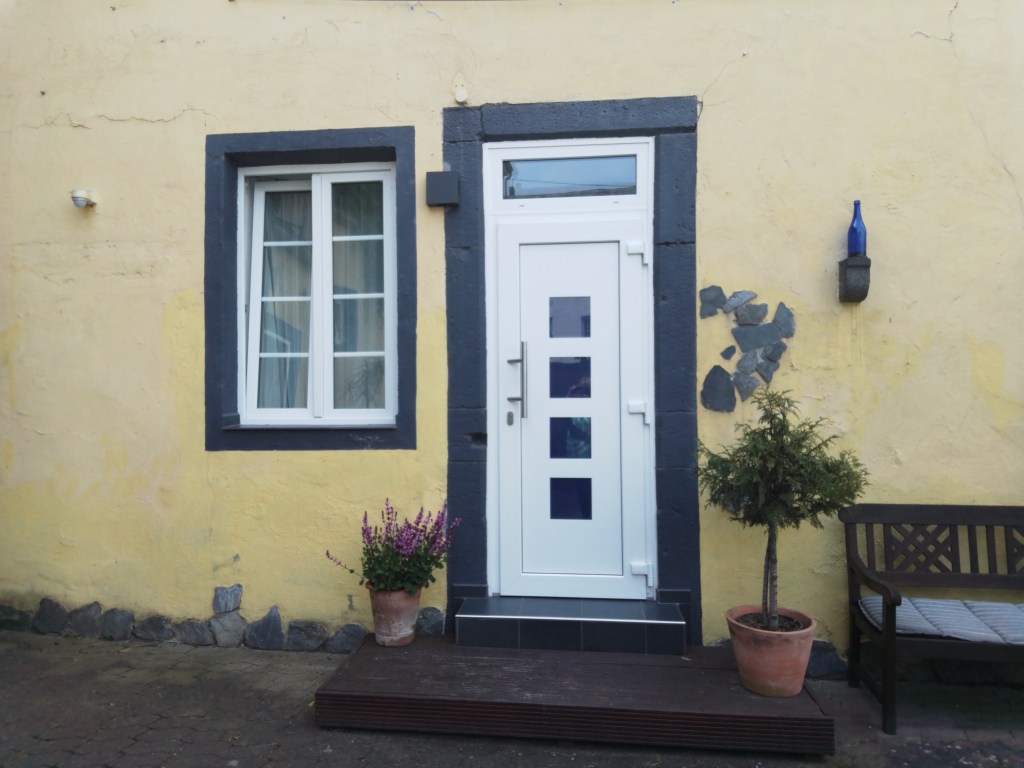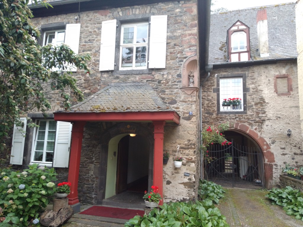 Er sei bezüglich der Treppen etwas beunruhigt gewesen, doch sie habe versichert, es bewältigen zu können. Bei ihrer Abreise meinte sie „Sehen Sie, das ging doch gut!“ Gerne hätte er einen Aufzug eingebaut, doch stehe das Gebäude stehe unter Denkmalschutz. Im weiteren Gespräch erfuhr ich, dass er seit gut 30 Jahren in Kobern sei und diese Pension seit 20 Jahren betreibe.
