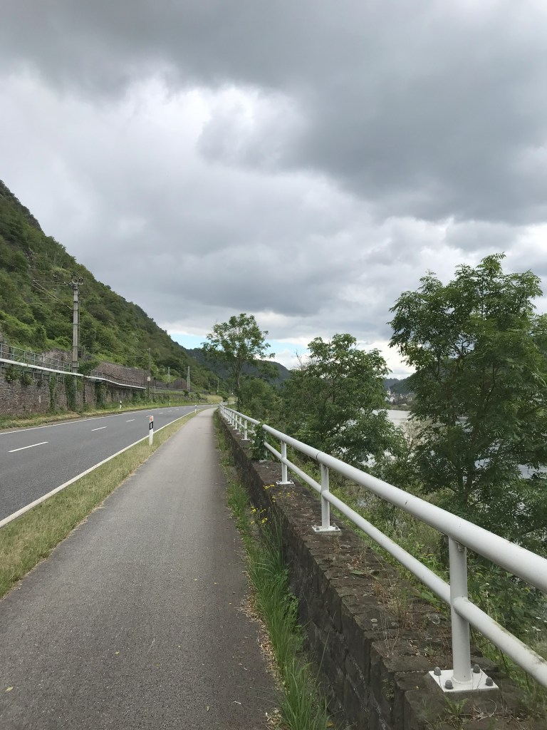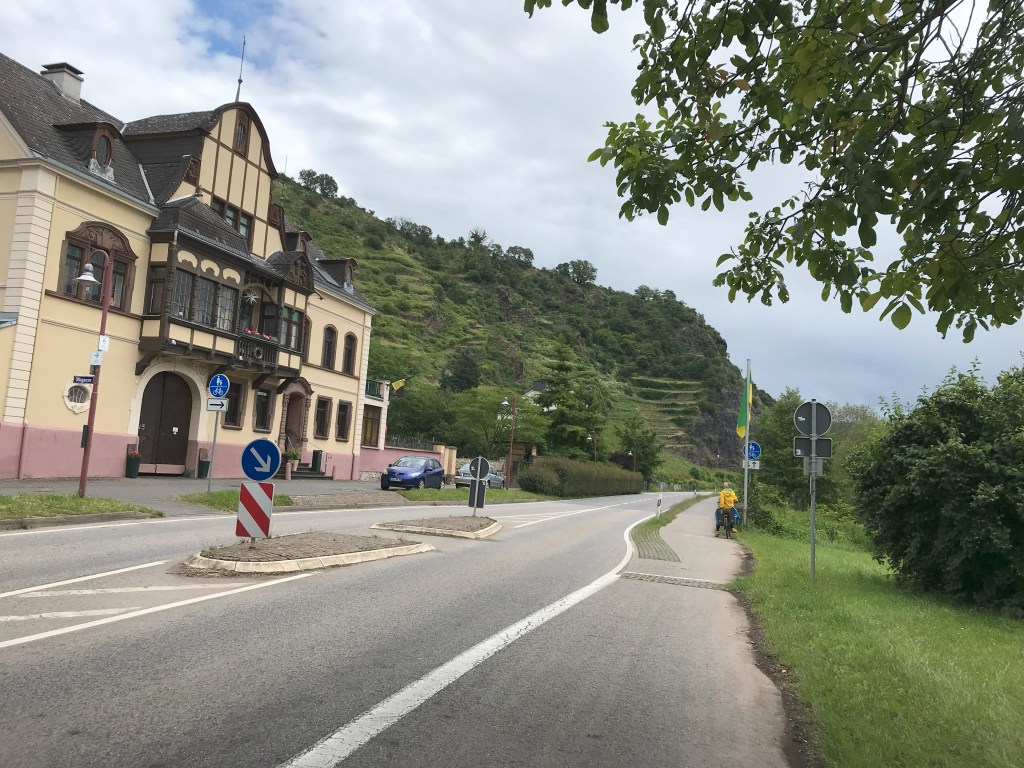 Vor Bad Breisig gibt es noch eine etwas herausfordernde Stelle mit einer geländerbewehrten Art von Serpentine – diese ist aber eher in der Gegenrichtung schwierig und dies ganz besonders, wenn noch jemand entgegenkommt.