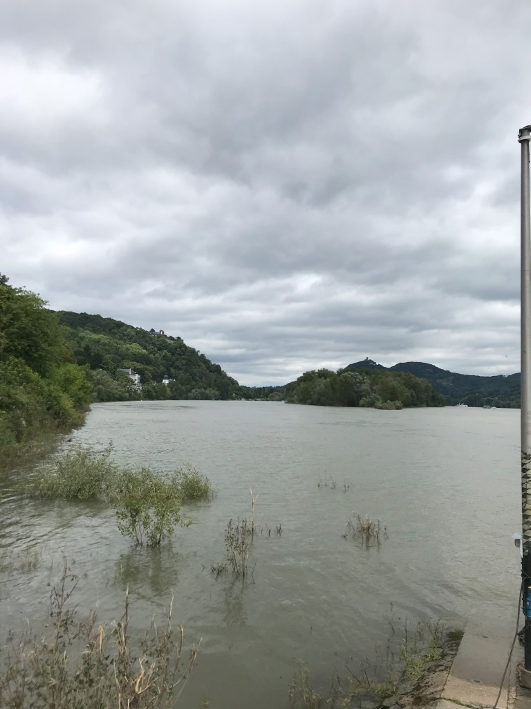 Was unseren Augen immer wieder wehtut, ist jenes Gebäude auf der gegenüberliegenden Linzer Rheinseite, aber natürlich benötigen wir alle Wohnraum, wobei zu wünschen wäre, dass die Architektur ein wenig mehr ihre Visionen an die Landschaft anpassen würde, und es entstanden in den letzten Jahren ja durchaus Konzepte des Bauens mit weniger Beton und durch verschiedene Maßnahmen mit mehr Nachhaltigkeit.