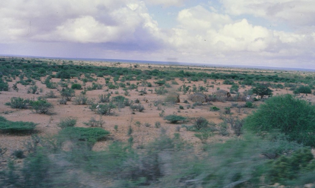 Gessi gibt Gas. Das ist bei den vielen Schlaglöchern auf dem Rückweg nach Mogadischu gar nicht so einfach. Das Land ist staubtrocken. Der Boden von Rissen übersät, da es bereits länger keinerlei Niederschläge mehr gegeben hatte. An den Ufern des Shebelle-Wadis sieht es an einigen Stellen etwas „grüner“ aus, da sich evtl. im Flussbett in einiger Tiefe unter der ebenfalls ausgetrockneten Oberfläche noch etwas Feucht befindet. Und so gibt es im Flussbett einige gegrabene Löcher, wo noch Wasser für Mensch und Tier gewonnen wird. Fließendes Wasser gibt es selten und höchstens nach der Regenzeit im das Flusswasser speisenden Gebiet jenseits der knapp nördlich von Belet Weyne gelegenen äthiopischen Grenze.