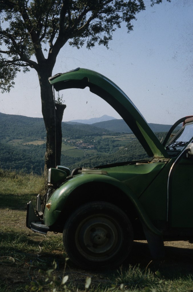 Foto StH: „2 Pferde“ (Citröen „2CV“ alias „Ente“) in den Pyrenäen (1987)