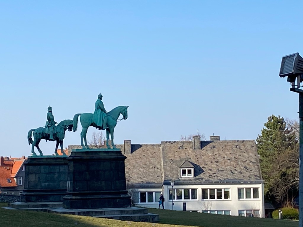 Danach gehe ich noch zur Kaiserpfalz, vor der ein größerer Platz ist. Vor dem Portal befinden sich zwei Reiter-Standbilder mit Pickelhauben