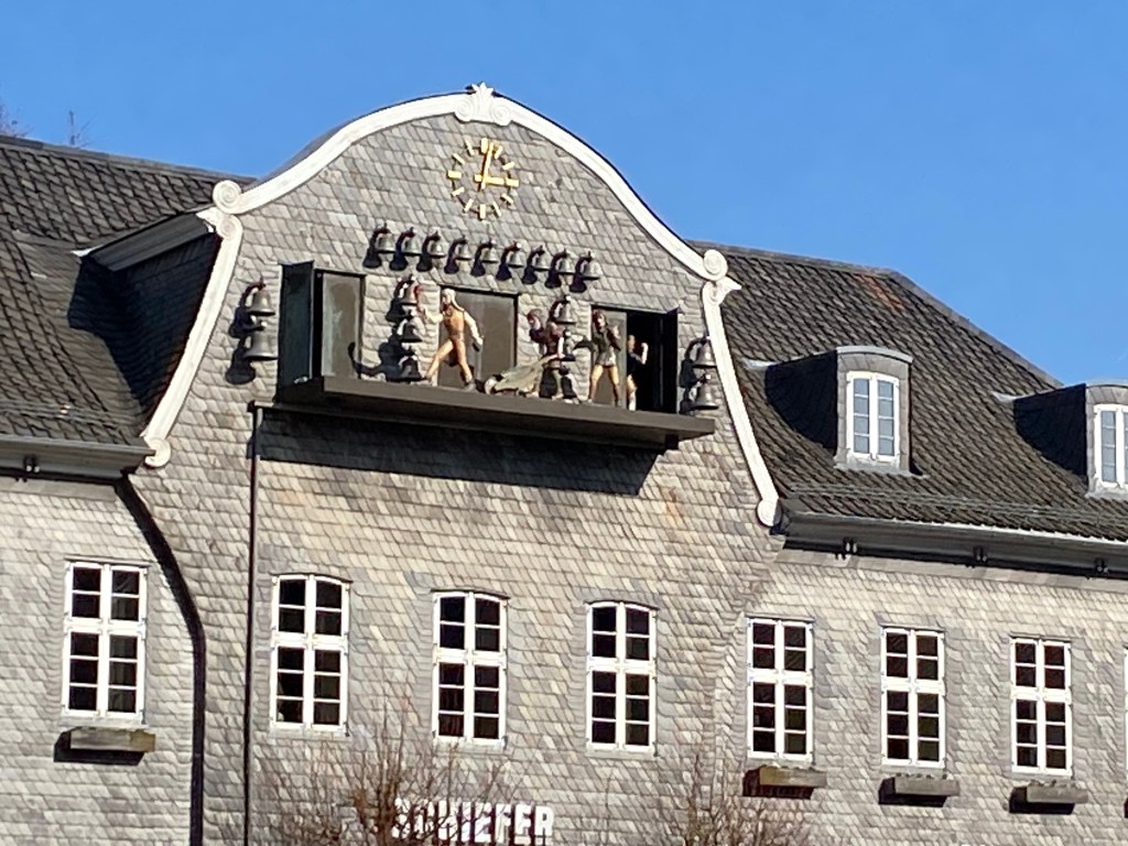 Beim Glockenspie auf dem Goslarer Markt kommen aus den drei Türen auch Figuren mit drei Szenen z.B. aus dem Bergbau: