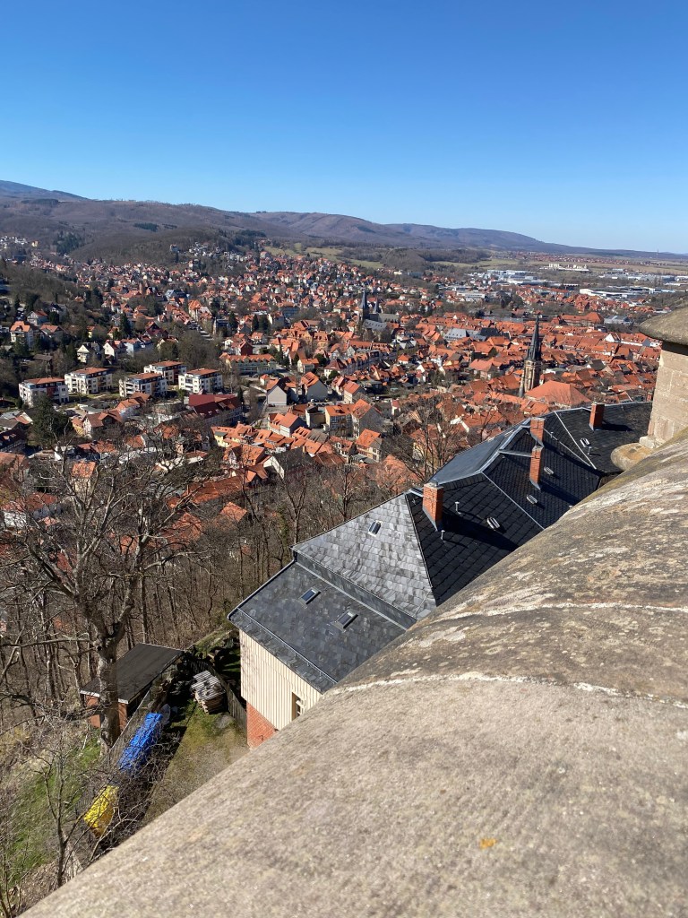 Man sieht von hier heute auch Wernigerode – rechts, etwas abseits auf dem Hügel ist das Schloss zu erkennen, das ich gestern besucht hatte