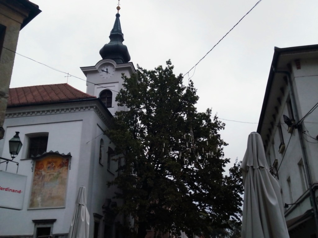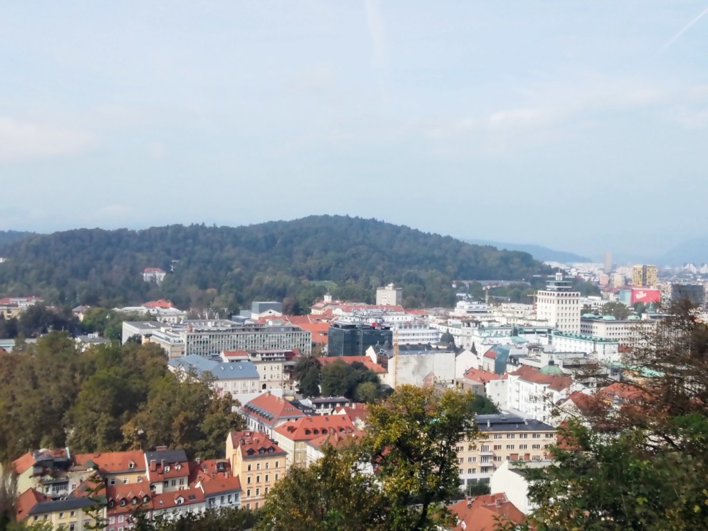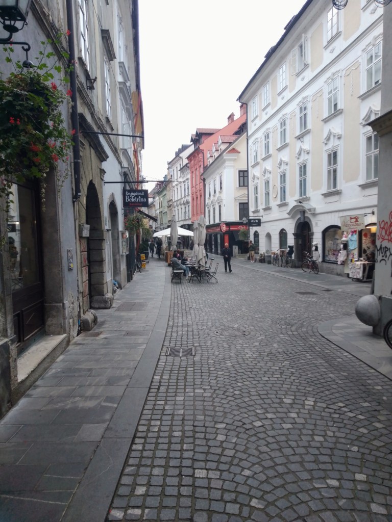 Als ich in Ljubljana an der zum Ausstieg bereiten und offenen Wagontüre stehe, ist der Abstand zum Bahnsteig schon so, dass ich (wie letztes) Jahr etwas zögere und überlege, wie ich die Tritte und dann den Spalt zum Bahnsteig unfallfrei überwinden kann. Schließlich bitte ich einen kräftigen Herrn um Hilfe, und halb stütze ich mich auf ihn beim Sprung, halb hebt und trägt er mich auf den Bahnsteig. Auch das ist also geschafft, und wir sind im frühen Nachmittag am Zielort. Wo geht es hier nun zum Hostel Celica? Eine Mischung aus Smartphone-Check und Jemanden fragen lässt uns den nicht sehr weiten Weg in leichtem Nieselregen recht gut finden.