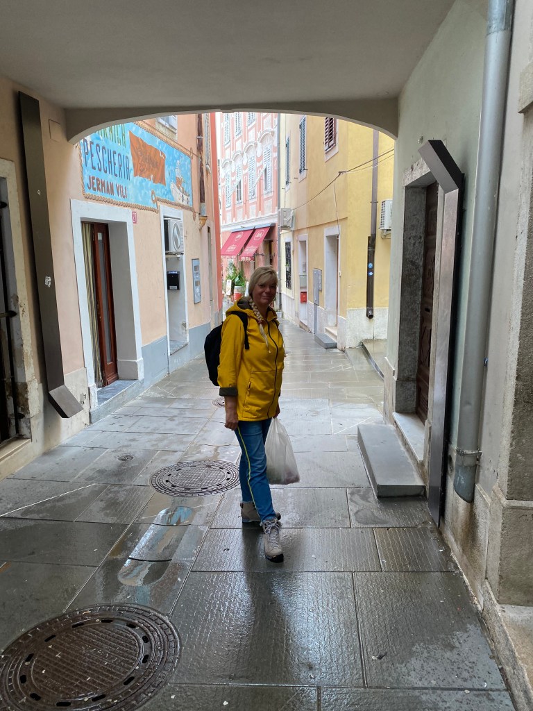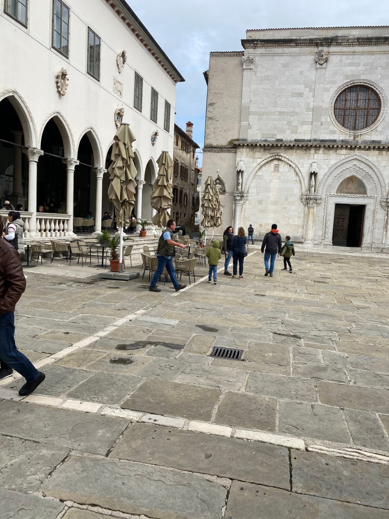 Am 4.10.24 fahren wir von dem kleinen Platz an der Marina, an dem auch die Touristeninformation und die Post liegen, mit dem Bus nach Koper, das vielleicht 10 km von Izola entfernt ist Aber Vorsicht: es gibt zwei Buslinien, und wir wählen die falsche, die uns nicht ins Zentrum von Koper, sondern zu einem Bushof ein wenig außerhalb bringt. Das ist letztlich nicht wirklich schlimm, aber eben ein wenig zu laufen.
