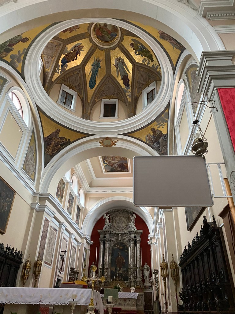 Von dort gehen wir durch kleine Gassen über Treppen mit langgezogenen Stufen auf den Hügel, auf dem sich eine weitere Kirche befindet.