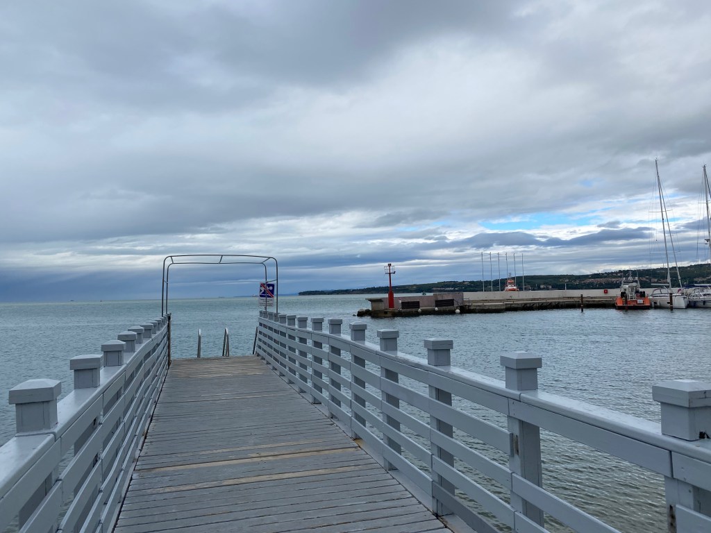 Von Hauptplatz gehen wir auf der anderen Seite weiter zur Küste hinunter, wo sich uns ein interessantes Farbenspiel am Meer zwischen Wasser und Himmel bietet