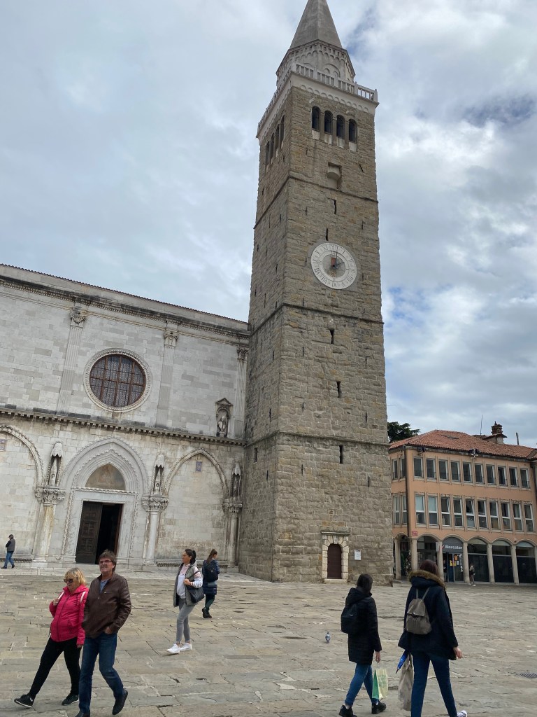 Der Kathedrale am zentralen, hochgelegenen „Haupt-Platz“ von Koper – eine Mischung aus Gotik, Renaissance und Barock, der Glockenturm ist 54 m hoch (Foto: StH)