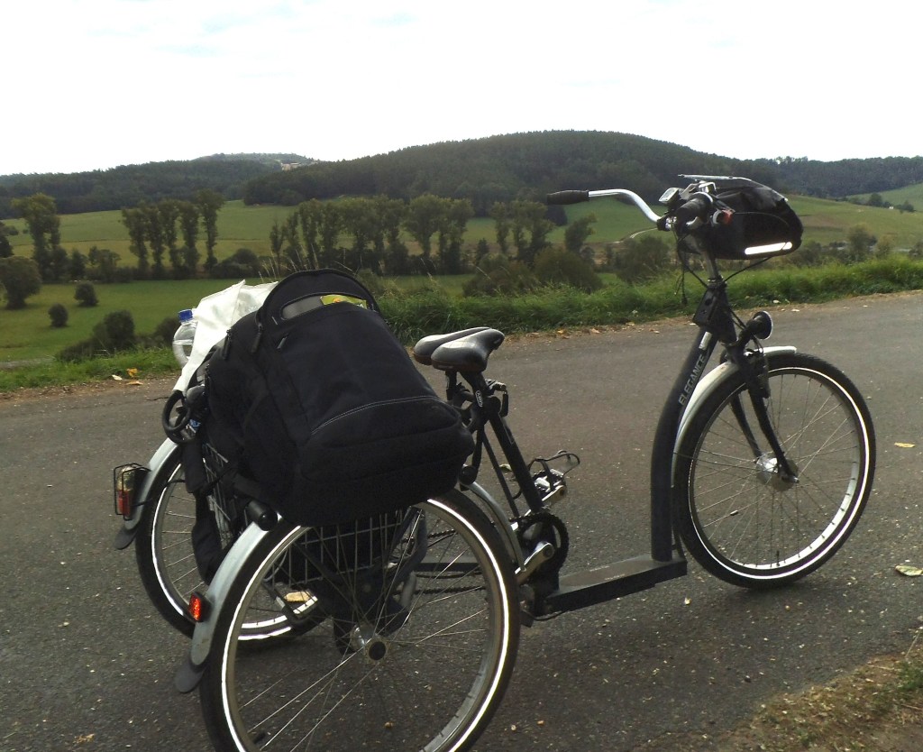 Bei Plankenfels/Franken – an der linken Pedale erkennt man auch den Korb zur Fixierung des gelähmten Fußes (Foto: StH im Sept. 2015)